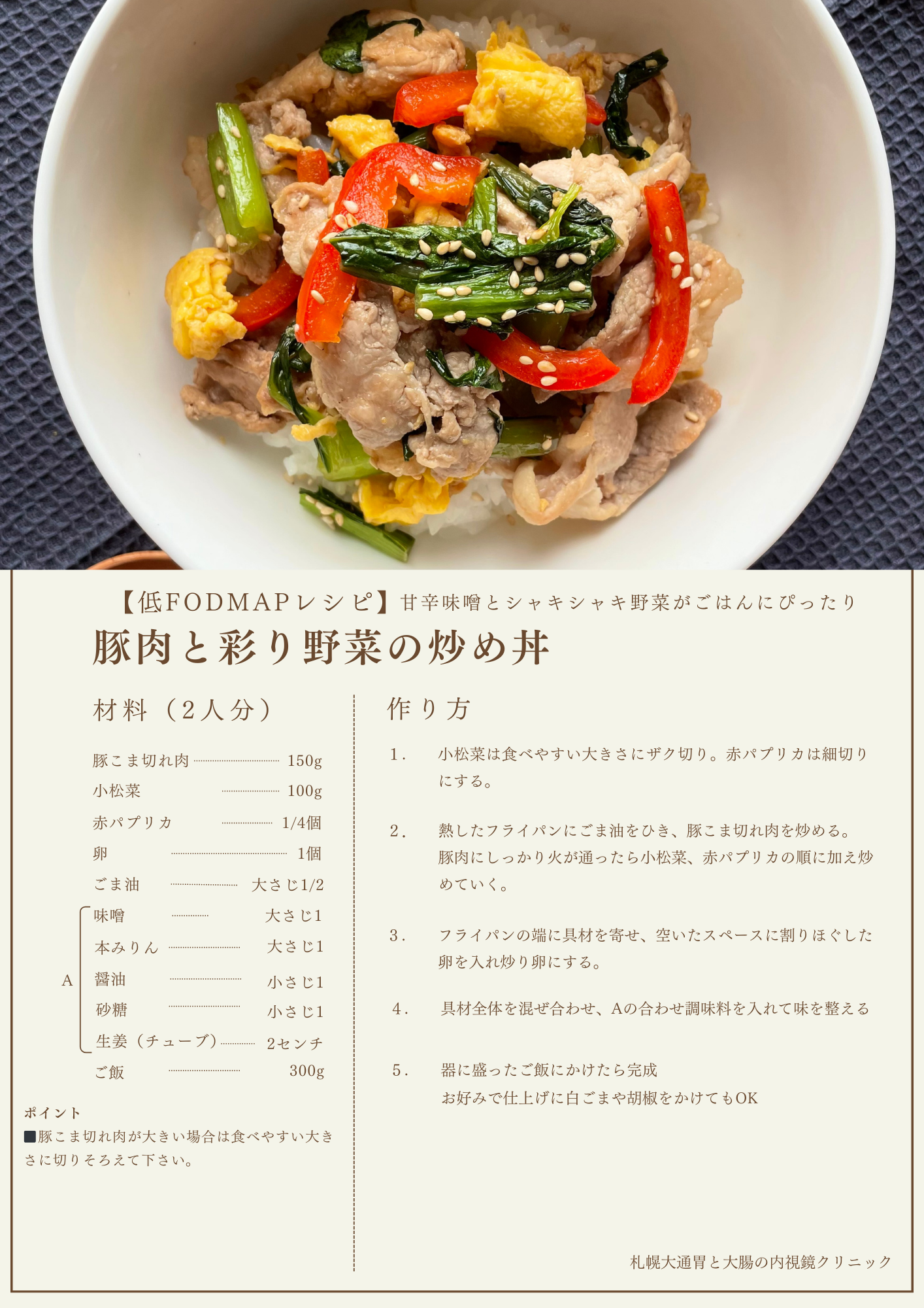 ■ 低FODMAP「豚肉と彩り野菜の炒め丼」は腸に優しい万能メニュー